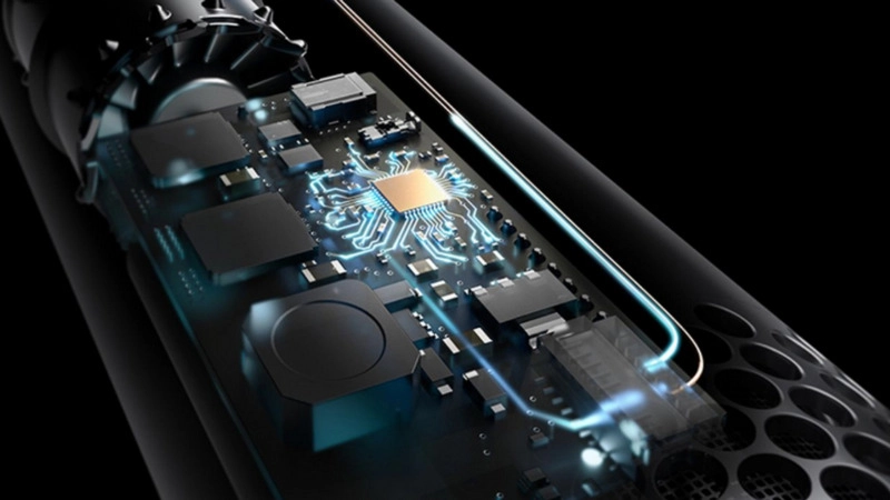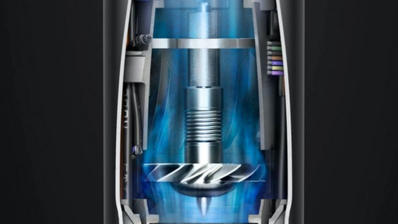 Двигатель с 13-лопастной крыльчаткой вращается со скоростью 110 000 оборотов в минуту и создает давление воздуха 3,2 кПа.