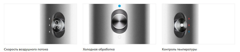 Кнопки управления стайлером позволяют менять скорость воздушного потока, включать холодный режим и менять температурный режим.