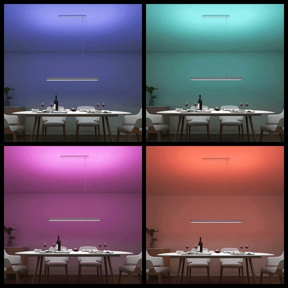 Подвесная люстра имеет встроенную RGB-подсветку. Создавайте настроение, включая один из четырех вариантов цветной подсветки.