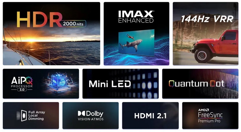 Технология TCL Mini LED с 480 зонами локального затемнения обеспечивает потрясающую глубину чёрного, выдающуюся яркость и чёткий контраст, позволяя рассмотреть мельчайшие детали как в светлых, так и в тёмных сценах.
