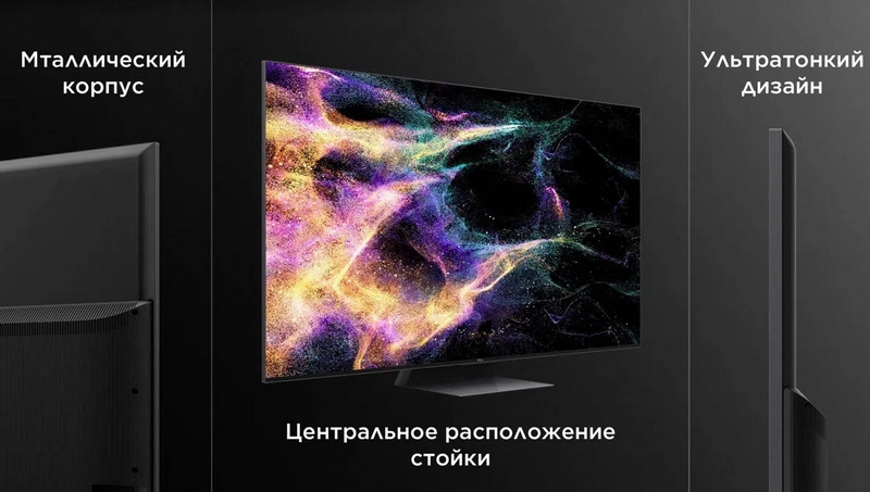 Телевизор впечатляет изысканным дизайном: ультратонкий металлический корпус придаёт устройству современный и элегантный вид, гармонично вписываясь в любой интерьер.
