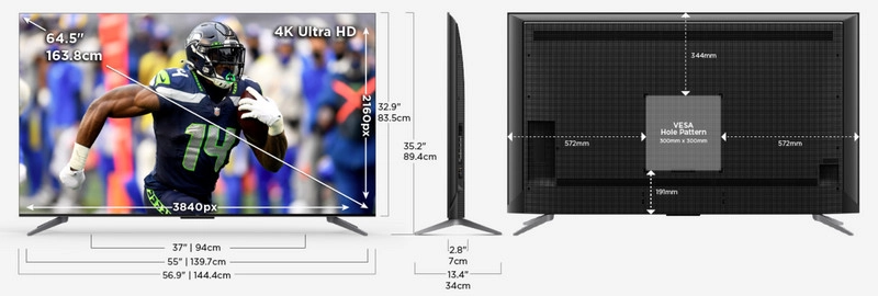 | Размеры с подставкой (ШxВxГ) | 1445,3 x 894,1 x 340,4 мм | |