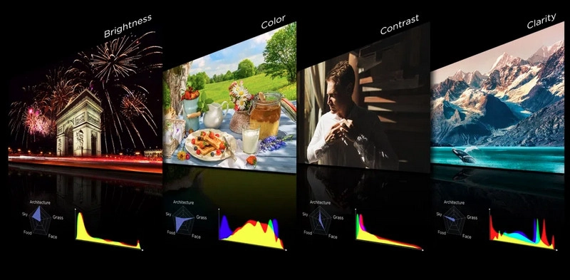 Процессор с ИИ анализирует и оптимизирует картинку, воспроизводя мир с естественной цветопередачей, контрастом и четкостью. Технология учитывает особенности человеческого зрения, превращая каждый кадр в визуальный шедевр.