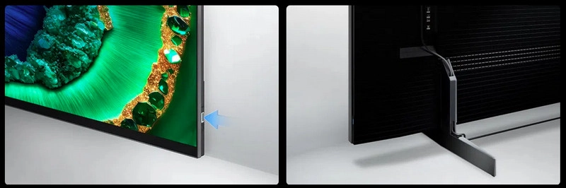 Все провода и кабели надёжно спрятаны в специальной системе кабель-менеджмента, что позволяет поддерживать чистоту и порядок вокруг телевизора, избавляя от лишних проводов и визуального беспорядка.