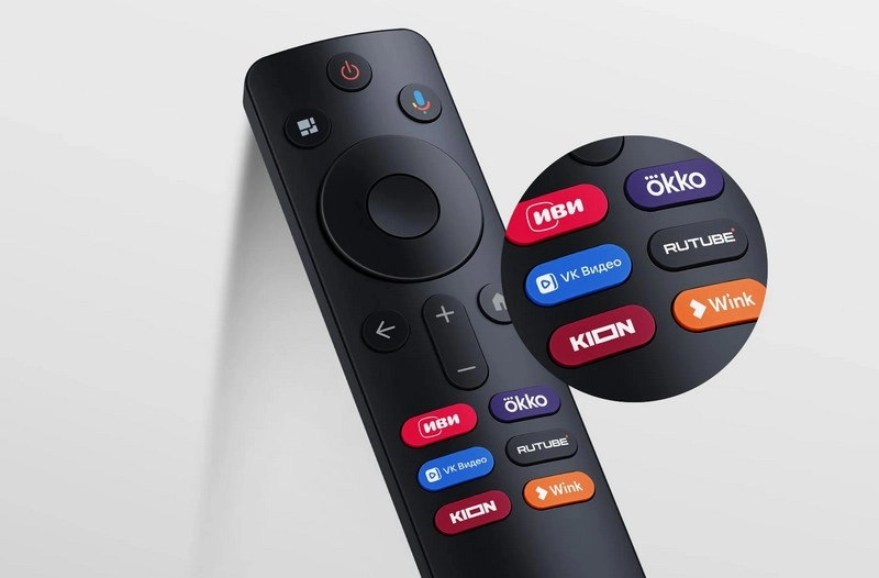 Bluetooth-пульт с поддержкой управления на 360 позволяет использовать телевизор без необходимости направлять его прямо на экран. Дополнительные кнопки быстрого доступа делают навигацию ещё проще и удобнее.