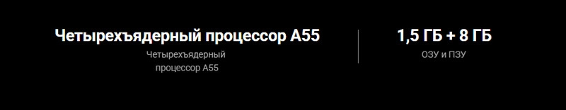 Телевизор оснащён четырёхъядерным процессором A55, 1,5 ГБ оперативной и 8 ГБ встроенной памяти. Такая конфигурация гарантирует плавное воспроизведение видео, стабильную работу приложений и отзывчивый интерфейс.