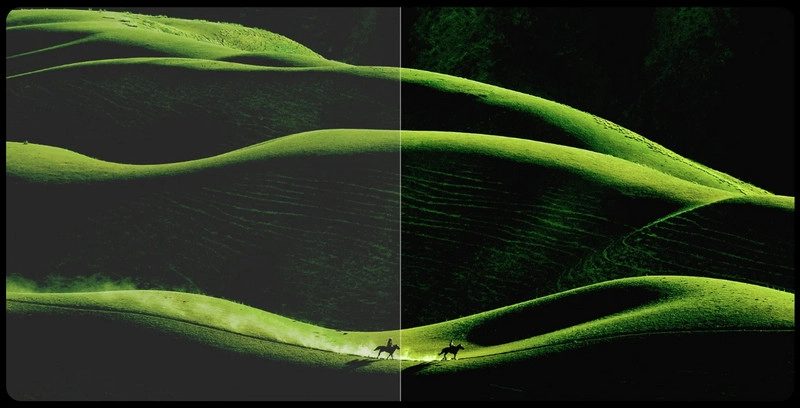 Алгоритмы AI Picture Engine интеллектуально настраивают насыщенность, контраст и тон изображения в зависимости от контента и условий освещения.
