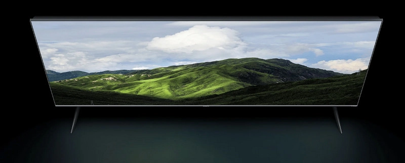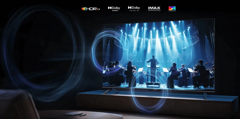 Тонкий металлический корпус и почти полное отсутствие рамок подчёркивают премиальный стиль телевизора, делая акцент на эффектном 85-дюймовом дисплее.