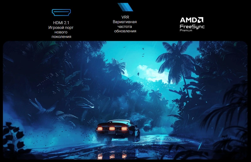Интерфейс HDMI 2.1, поддержка VRR и задержка всего 4 мс обеспечивают быструю реакцию на действия пользователя — без лагов и разрывов.