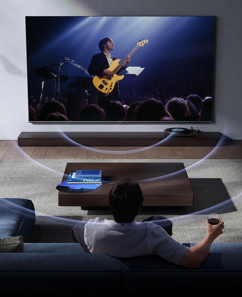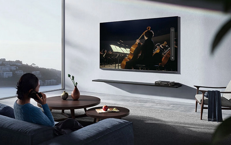 Телевизор оснащён цельнометаллическим корпусом и практически безрамочным дисплеем: изображение занимает 98% площади передней панели, создавая эффект полного погружения и делая просмотр ещё более захватывающим.