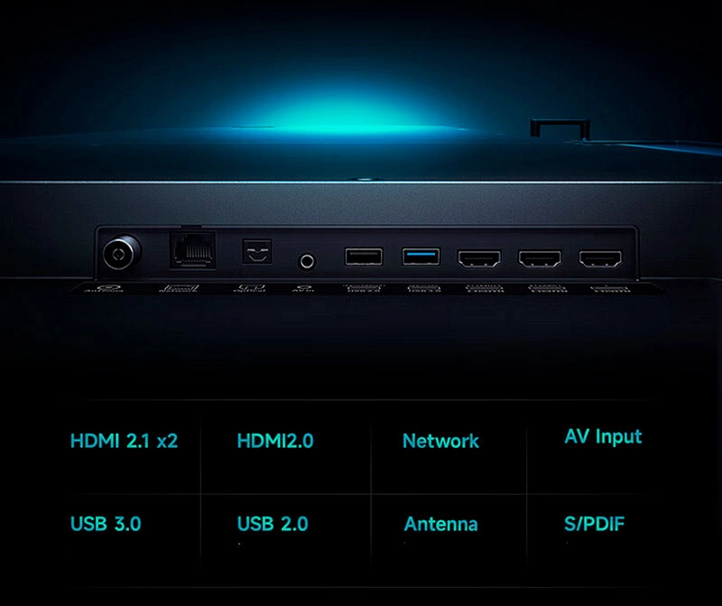 У Xiaomi TV S Pro 100" два HDMI стандарта 2.1 для подключения игровых консолей других устройства, а также быстрый USB 3.0. Также телевизор получил стандартный HDMI 2.0, USB 2.0, AV-вход, S/PDIF, Ethernet и антенный вход.