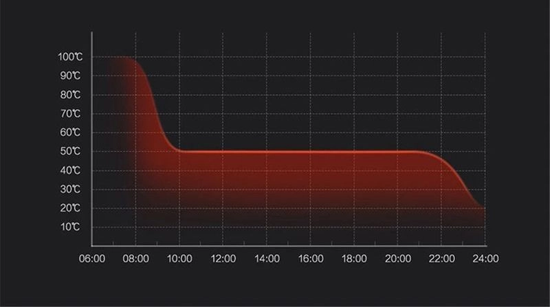 На протяжении 12 часов термос поддерживает стабильную температуру 50°C.