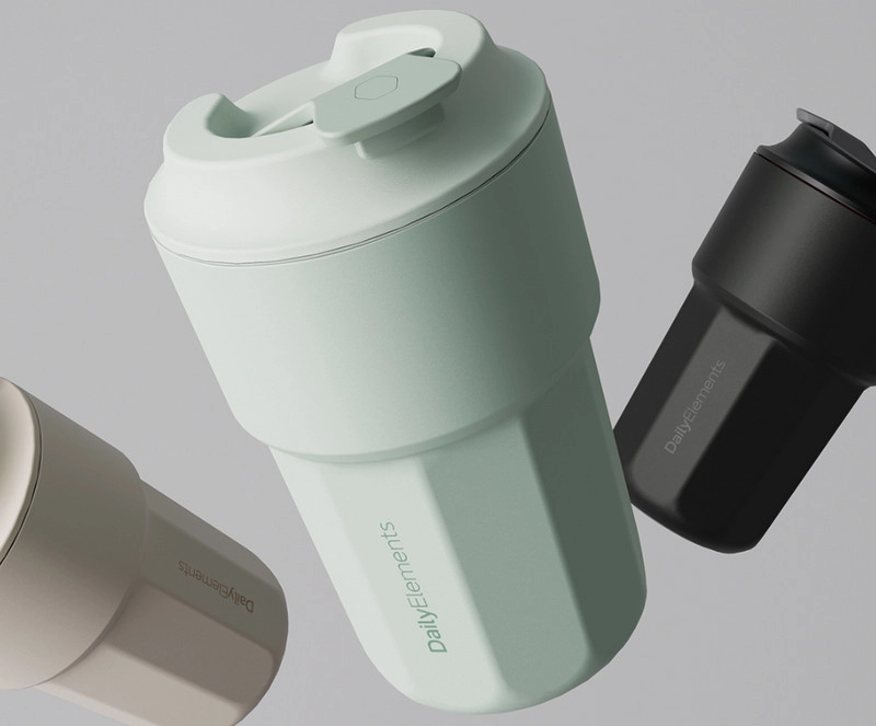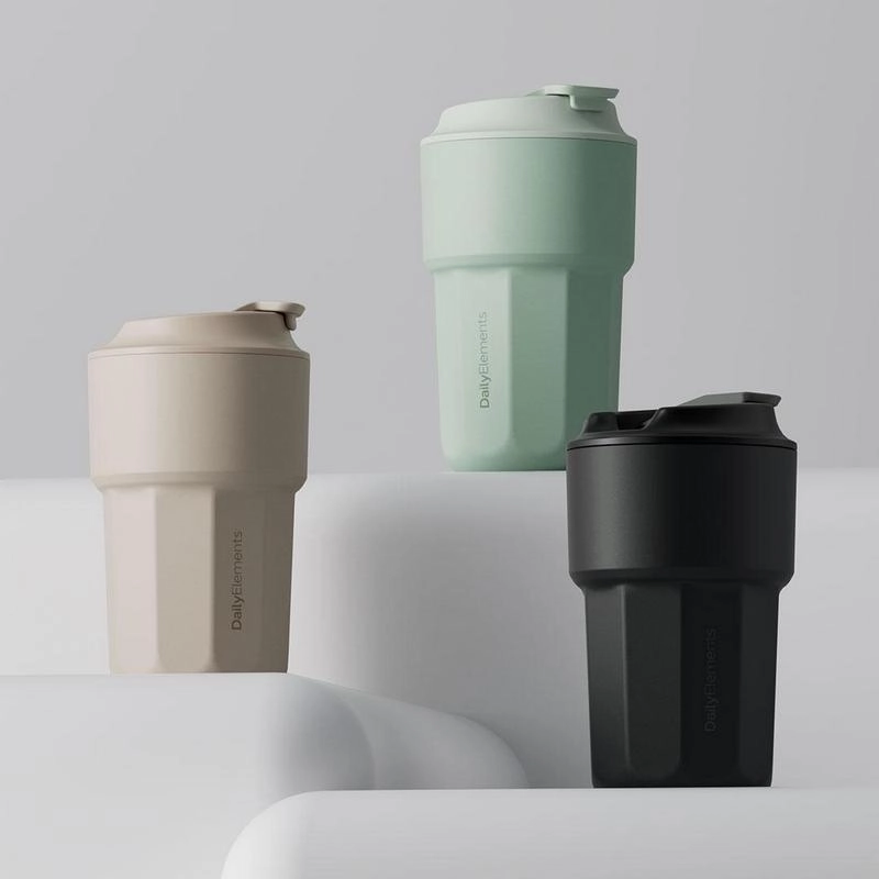 В основной коллекции представлено три цвета Daily Elements Coffee cup. Также выпущена и лимитированная коллекция в стальном исполнении. Отдельно можно приобрести ремень для переноски термокружки.