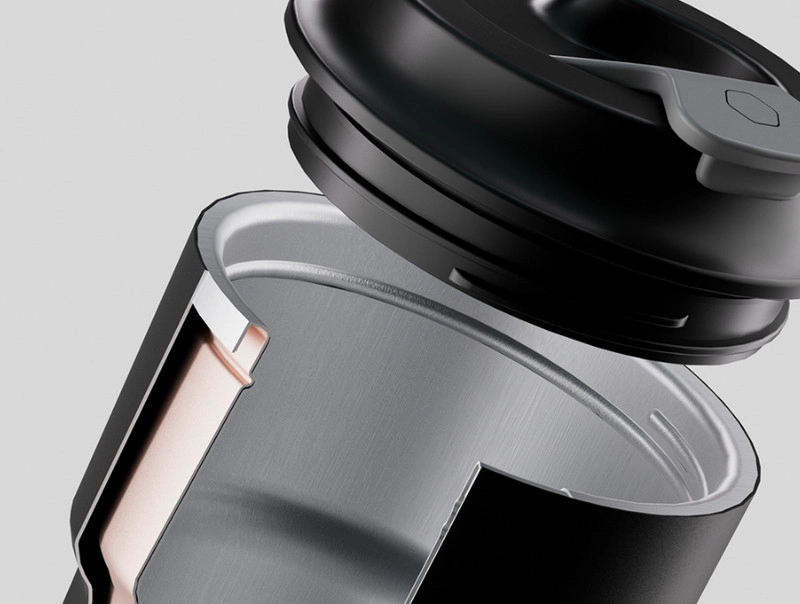 Внутренняя колба выполнена из пищевой стали, а внешний корпус из термостойкого полипропилена. Кружка-термос помещается в стандартный подстаканник автомобиля.