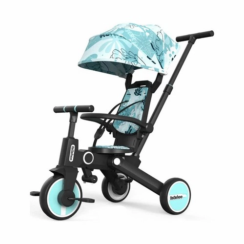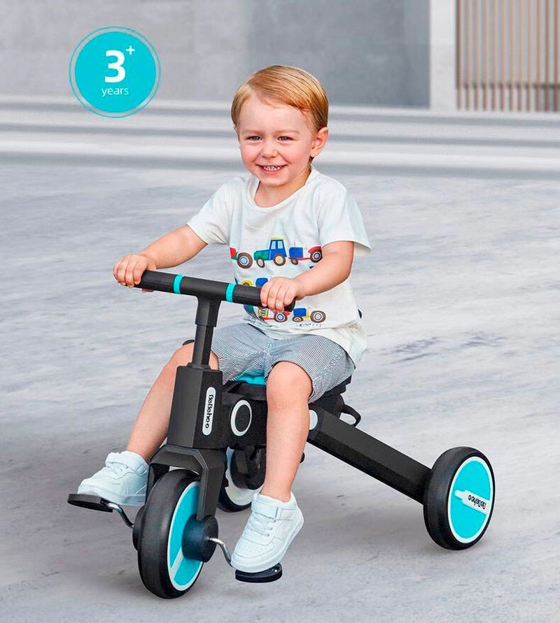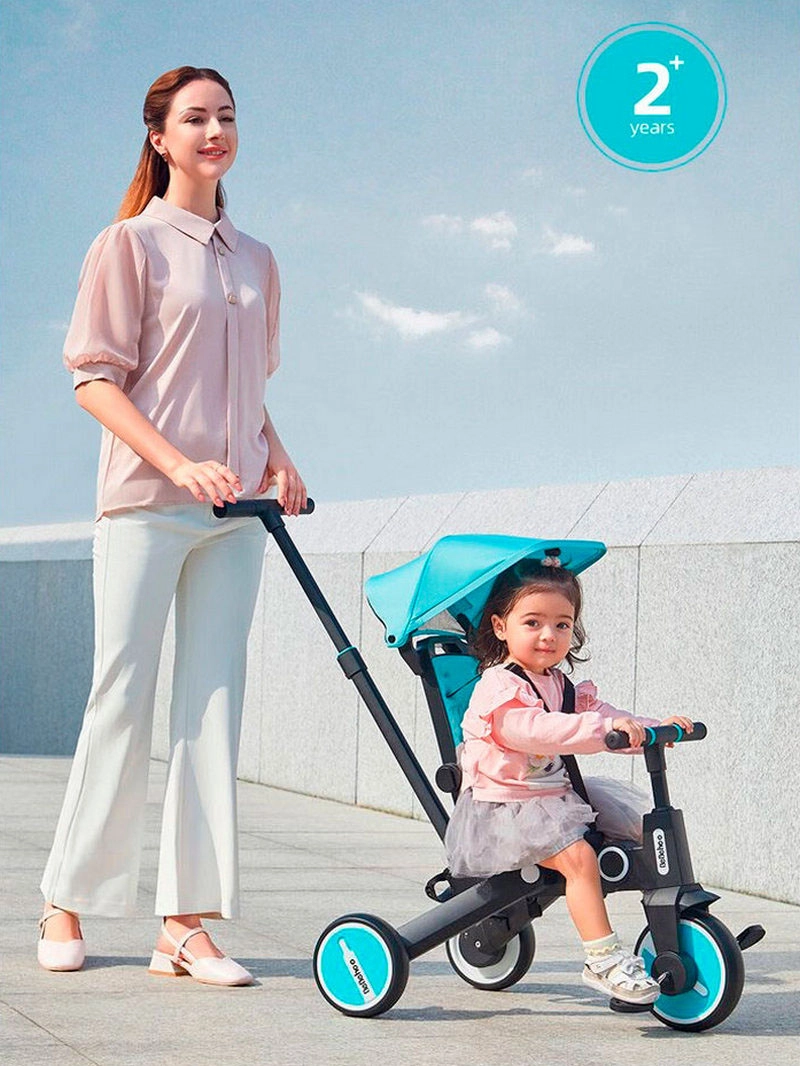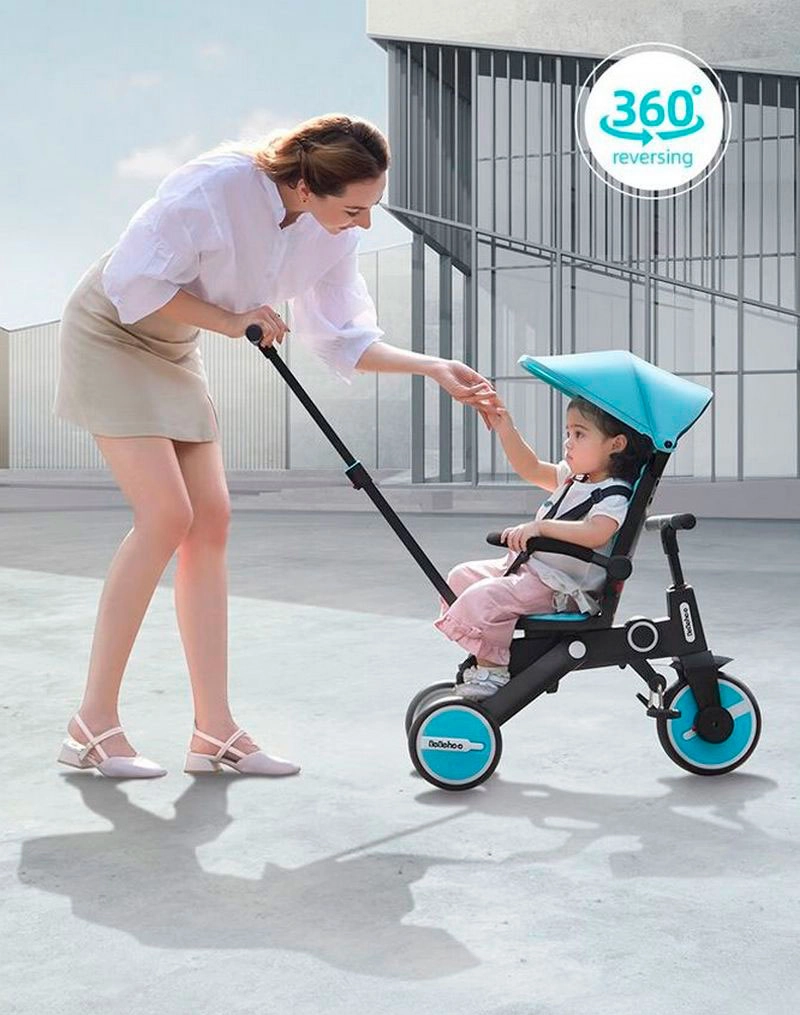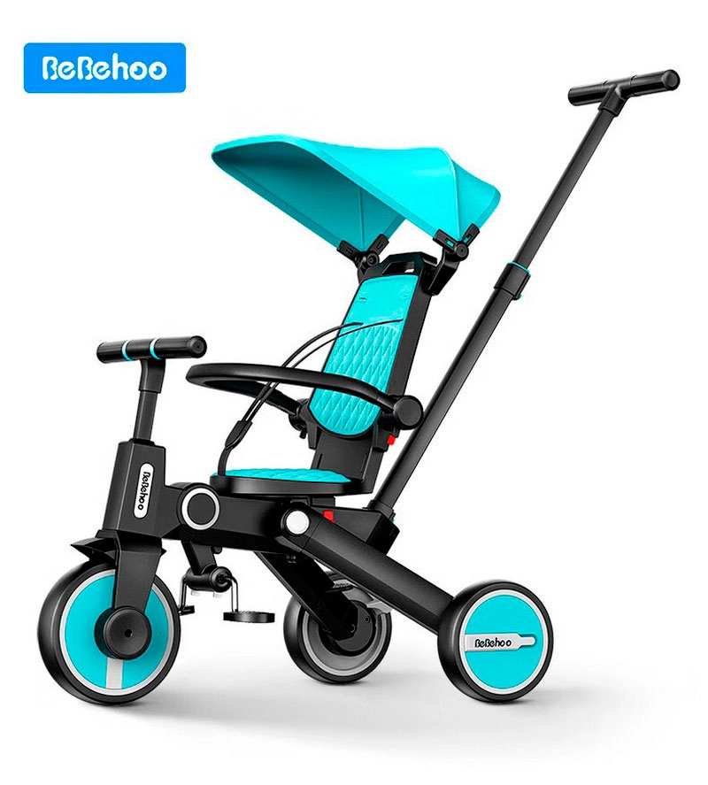 Трехколесный велосипед-трансформер Bebehoo Childrens Tricycle ST168 — с направляющей родительской ручкой. Удобное и продуманное транспортное средство для детей, которое растет вместе с ними. Сиденье вращается лицом к родителю или к дороге, съемный козырек от солнца и ограничитель для малышей, а также педали для детей постарше.