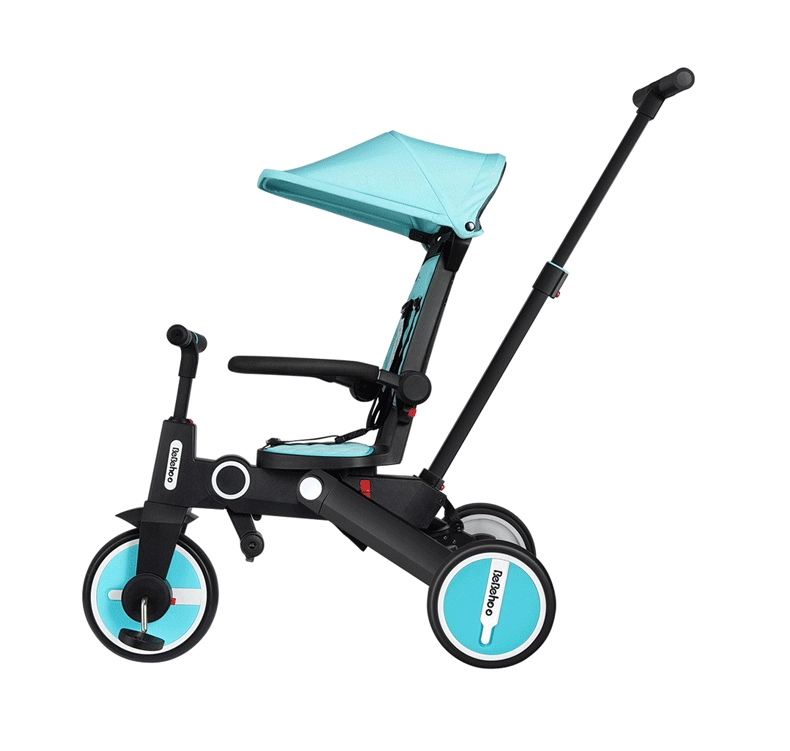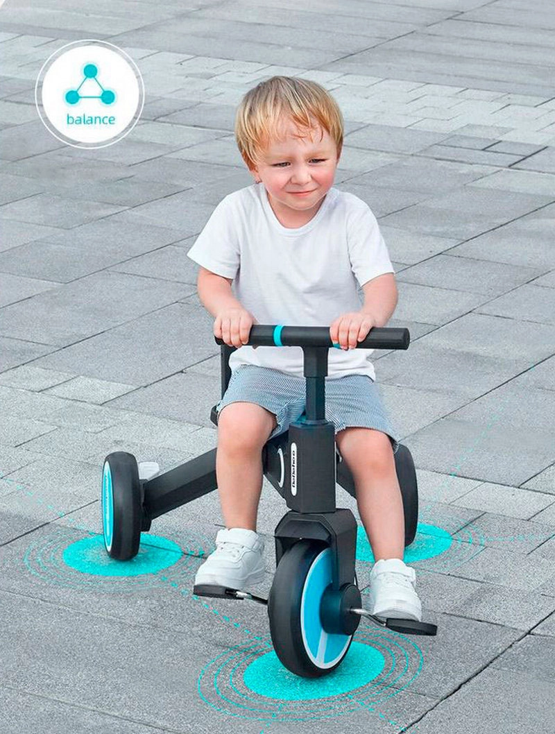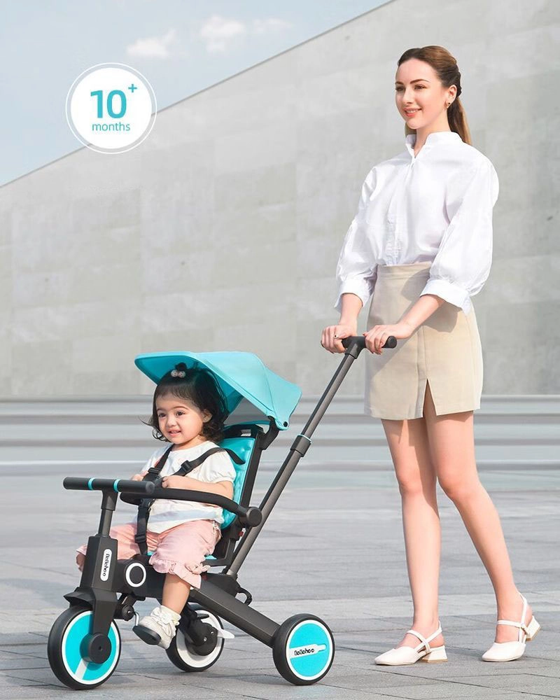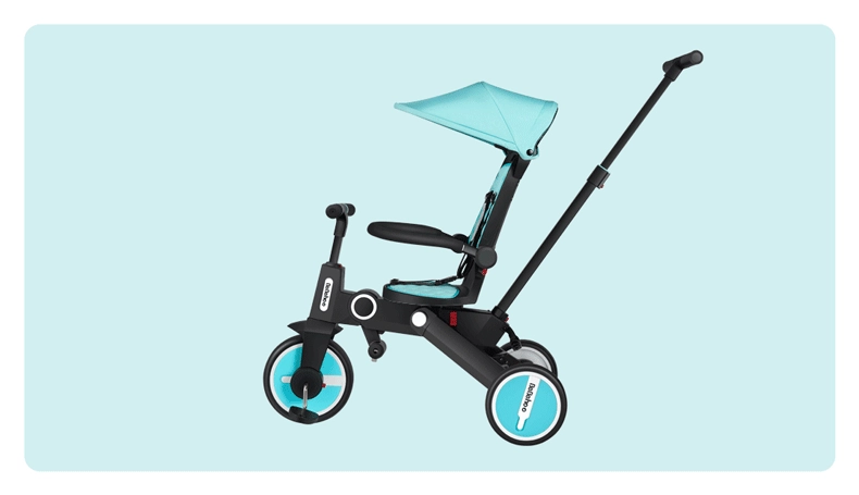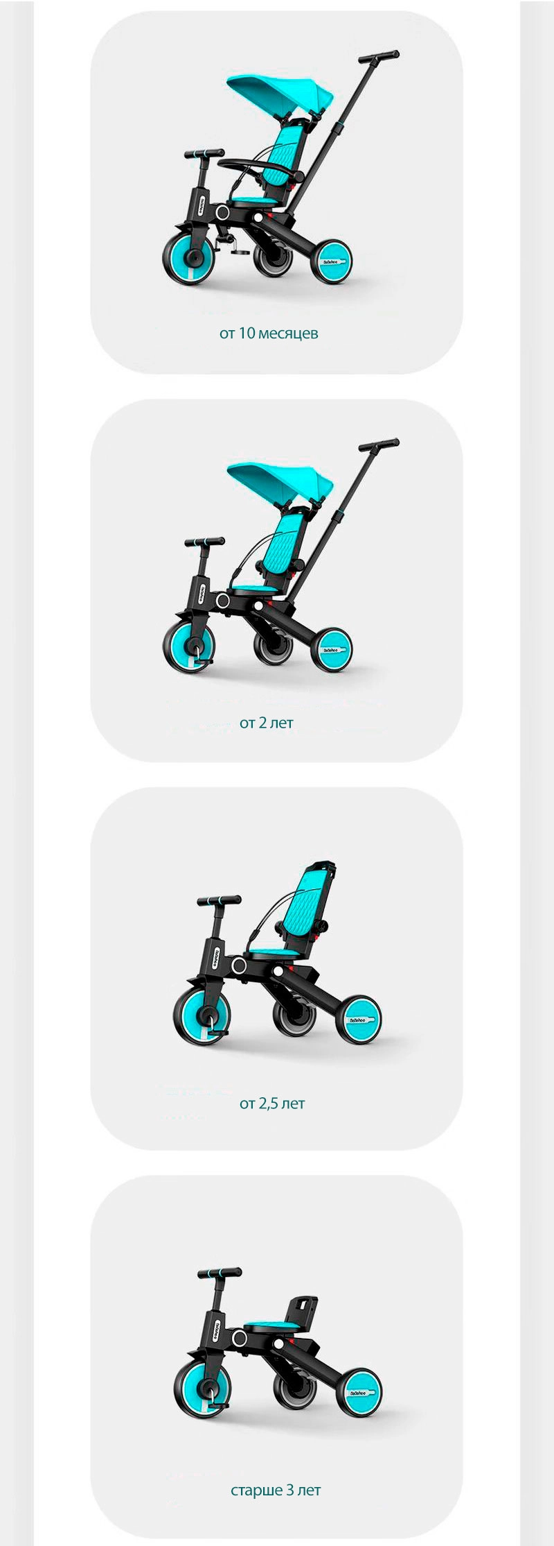 Трехколесный велосипед-трансформер Bebehoo Childrens Tricycle ST168 — с направляющей родительской ручкой. Удобное и продуманное транспортное средство для детей, которое растет вместе с ними. Сиденье вращается лицом к родителю или к дороге, съемный козырек от солнца и ограничитель для малышей, а также педали для детей постарше.