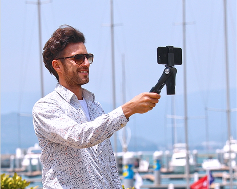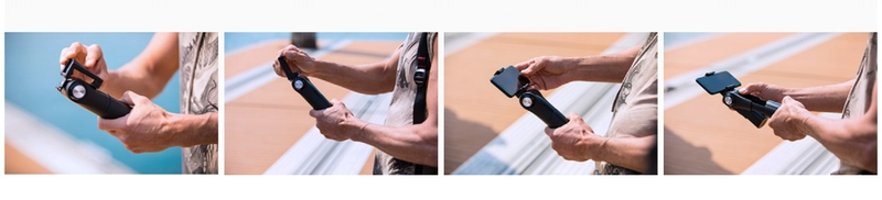 Конструкция стабилизатора интуитивно понятна. Смартфон легко установить, а сам стабилизатор складывается для компактного хранения.