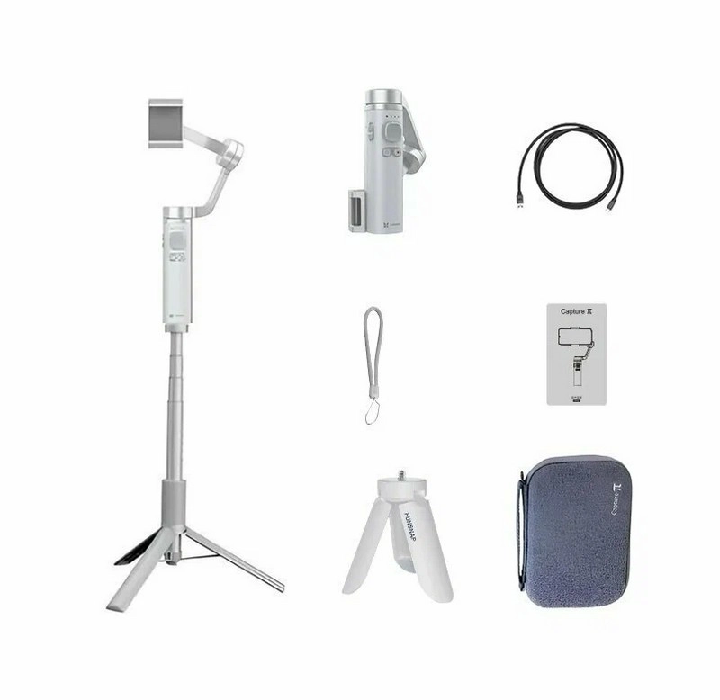 Трехосевой стабилизатор смартфона Funsnap Capture Pi Combo — складной и портативный гаджет для ваших лучших кадров. Множество автоматических режимов съемки, отслеживание лиц, автоматическое выравнивание, горизонтальная и вертикальная съемка, поддержка сверхширокоугольной съемки и прочный корпус, выдерживающий нагрузку до 300 грамм. В комплекте со стабилизатором вы получаете штатив и сумку.