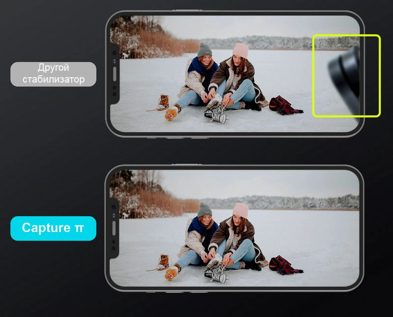 Funsnap Capture π SE поддерживает смартфоны со сверхширокоугольной камерой и не мешает в кадре.
