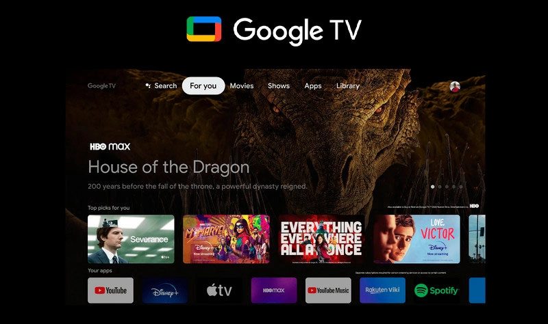 Встроенная операционная система Google TV на базе Android TV 11 формирует ленту рекомендаций на основе ваших предпочтений.