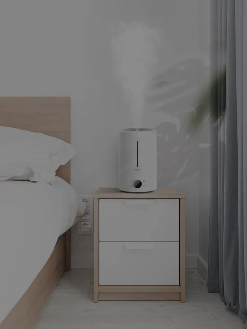 Ультразвук превращает воду в мелкодисперсионный пар, который быстро и эффективно повышает влажность в помещении не повреждая мебель и бытовую технику.