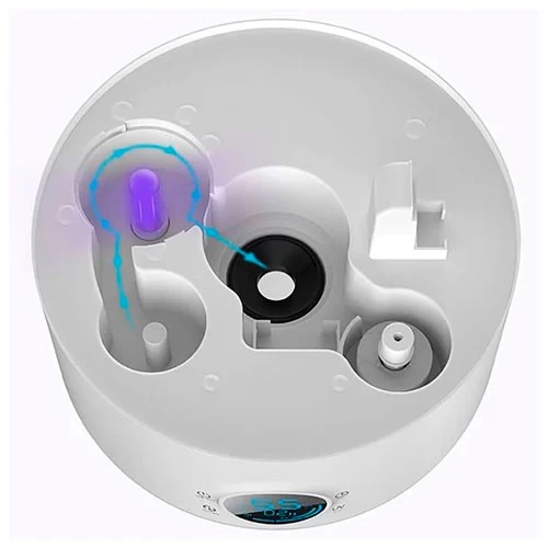 В основании увлажнителя расположена ванночка для ароматических масел, которые будут испаряться вместе с водой и наполнять воздух приятным ароматом.