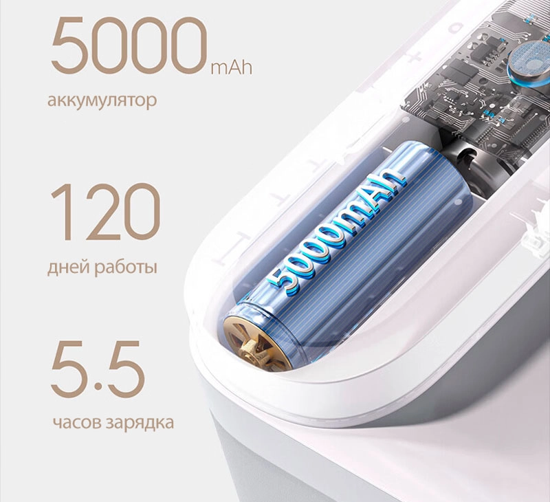 Большого аккумулятора емкостью 5000 мАч хватает на 120 дней работы поилки. Для полной зарядки батарее достаточно 5,5 часов.