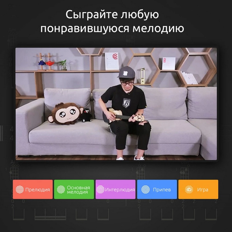 Подарила племяшке на день рождения, ребенку у которого есть все этот подарок очень понравился! Удобная функция обучения игре, включаешь мелодию на телефоне, а укулеле подвечивает нужные струны.