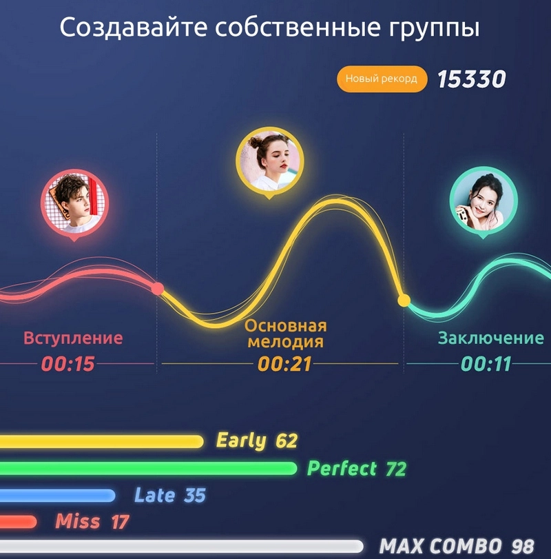 Продвигайтесь шаг за шагом к вершинам мастерства ежедневно изучая новую мелодию.