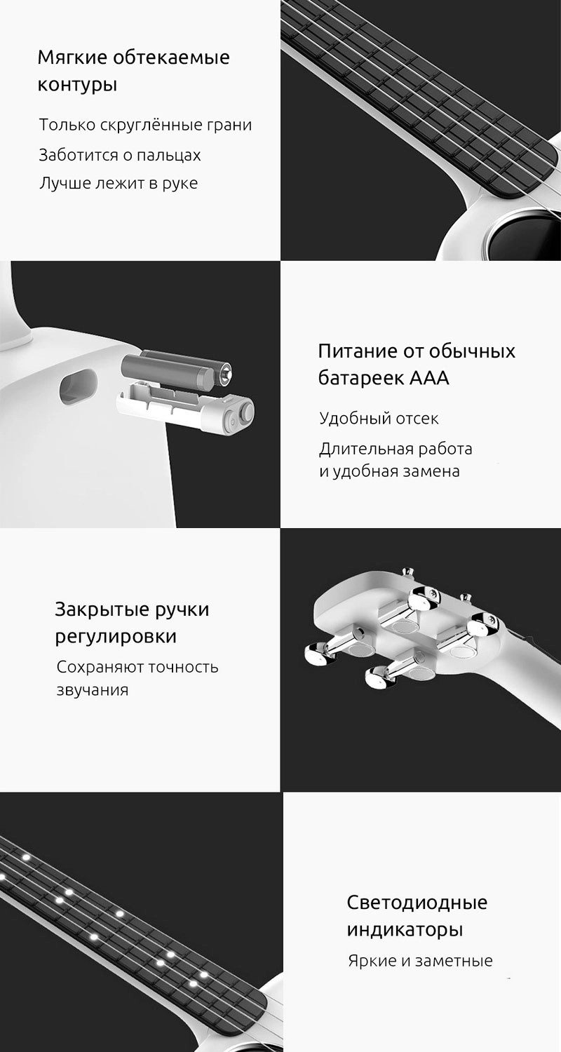 | Комплектация | Умное укулеле, батарейки ААА (2 шт.) | |