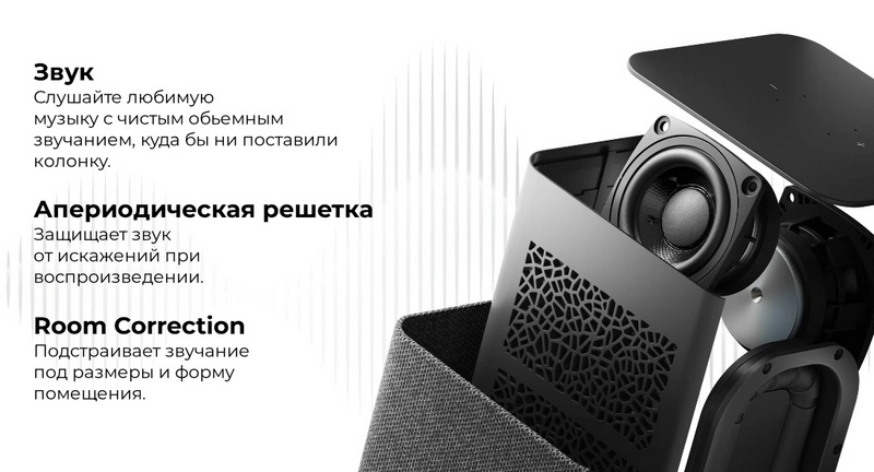 В небольшом корпусе Станции прячется 30 Вт объемного звука. Чистое звучание и удобное управление голосовое управление громкостью.