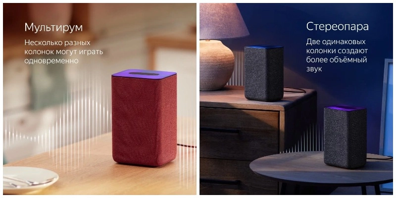 Вы можете объединять колонки в мультирум или стереопару. Несколько колонок в разных комнатах могут проигрывать одну и ту же музыку, а две колонки рядом могут объединиться в стереопару и создать максимально объемное звучание.