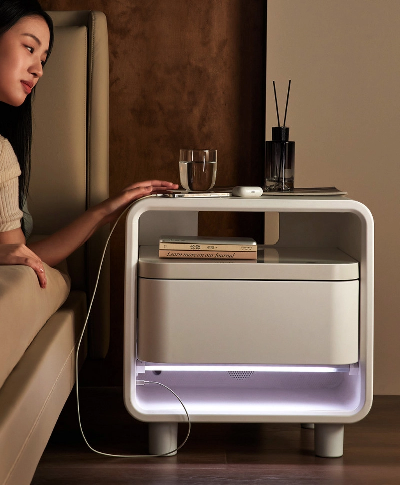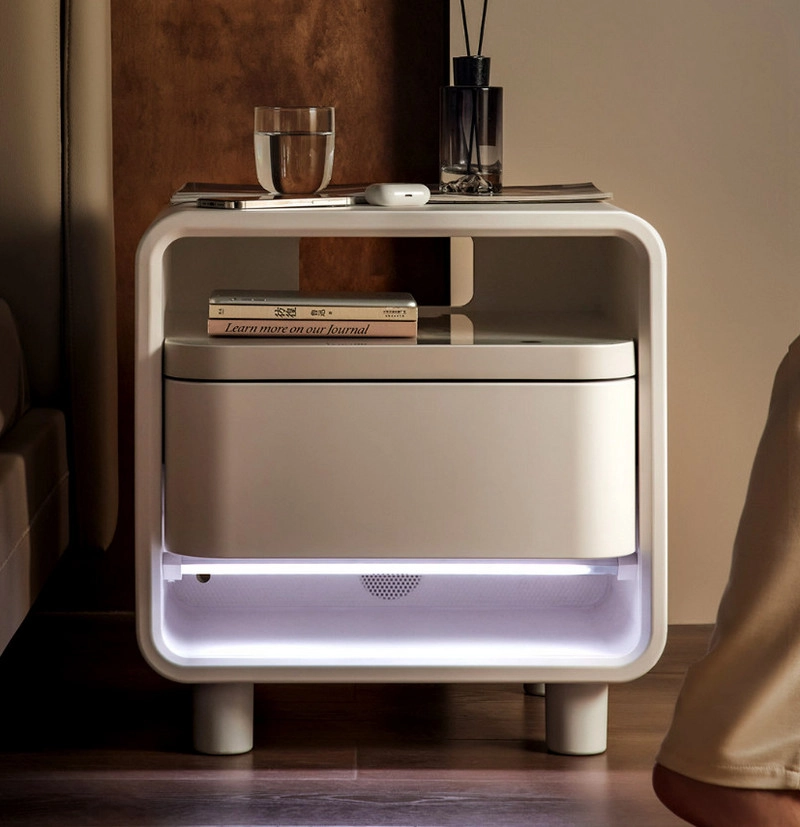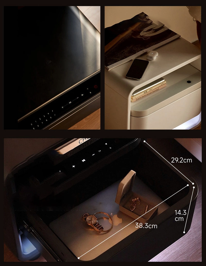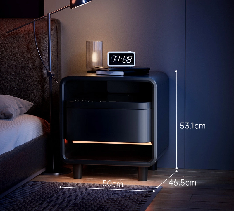 Умная прикроватная тумбочка 8H Fun Sleep Smart Multi-Purpose Bedside Table G1 — совмещает в себе современные функции безопасности и удобства. Она оснащена встроенным сейфом с биометрическим замком и цифровым кодом, станцией быстрой зарядки для гаджетов, а также поддерживает управление через экосистему умного дома Xiaomi при помощи мобильного приложения.