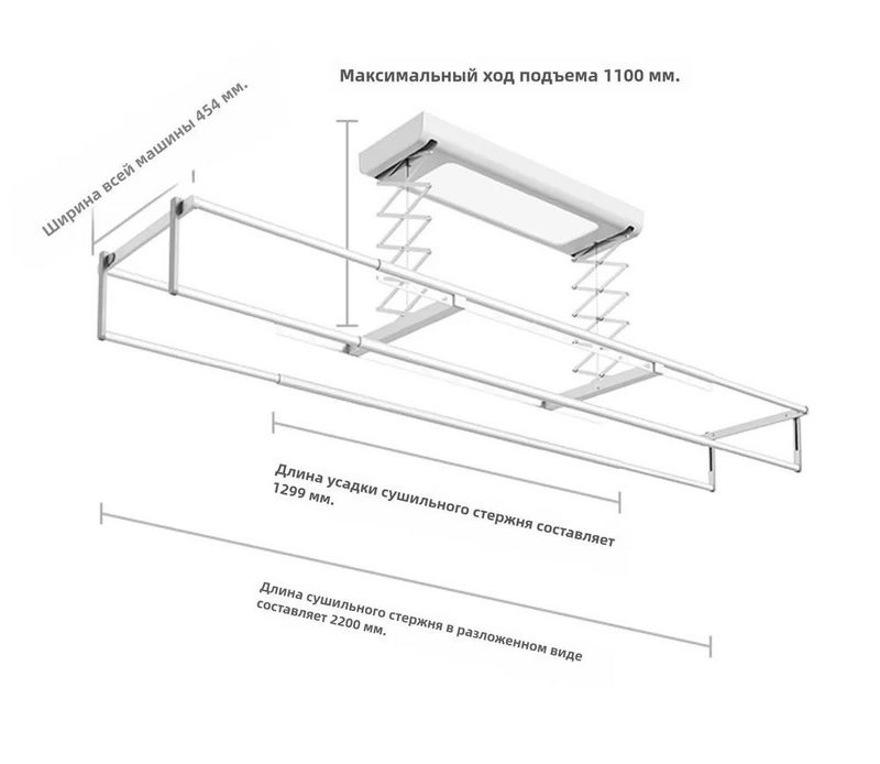 Вы можете опускать и поднимать сушилку на необходимую высоту, максимальное расстояние опускания составляет 2,2 м.