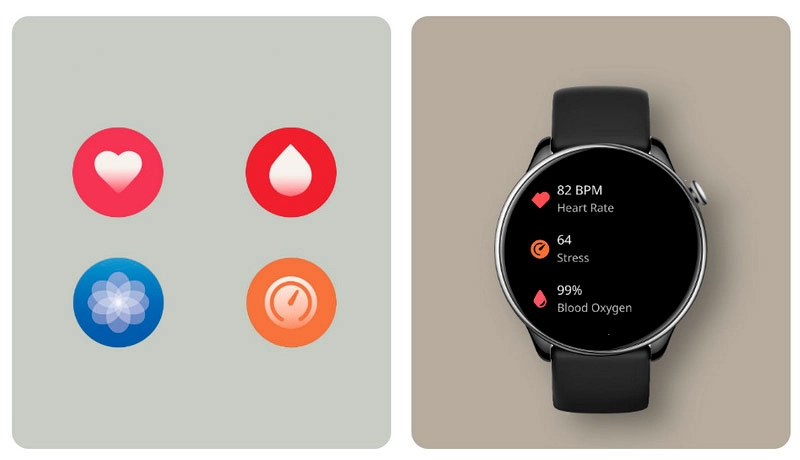 Умные часы осуществляют круглосуточный мониторинг за частотой сердцебиения, уровнем кислорода в крови и уровнем стресса. Также часы могут отслеживать и частоту дыхания. А измерить все метрики можно одним нажатием.