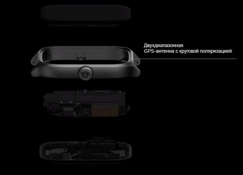 В часах Amazfit GTS 4 установлена двухдиапазонная антенна с круговой поляризацией. Такие антенны устанавливают в автомобилях и самолетах. Она обеспечивает точное позиционирование при любом рельефе местности.