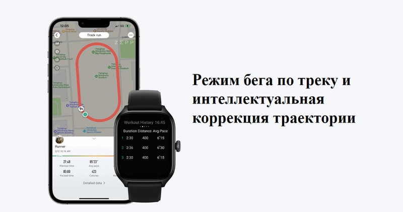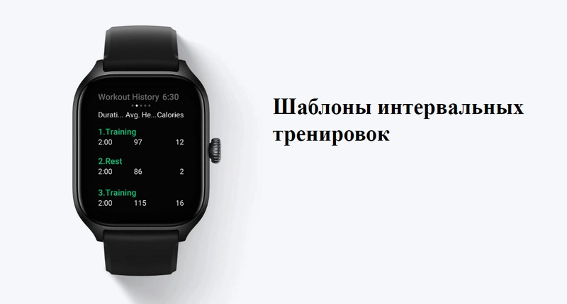 Умные часы поддерживают режим бега по треку, в котором они автоматически корректируют траекторию, подсчитывают средний темп и расстояние для каждого пройденного круга. Шаблоны для интервальных тренировок можно создавать для 10 различных видов спорта, этапы тренировок могут повторяться до 30 раз в рамках одного занятия.