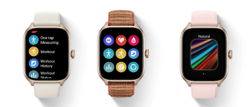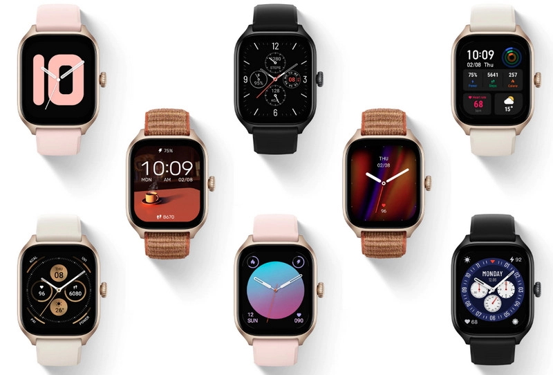 В коллекции Amazfit GTS 4 представлено четыре цвета ремешка и два цвета корпуса часов. Три ремешка выполнены из жидкого силикона или фторэластомера, а один сплетен из прочных нейлоновых нитей.