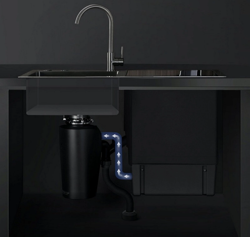 Слив посудомоечной машины можно направить напрямую в измельчитель, с одной стороны не придется делать отвод канализации, а с другой горячая вода с моющим раствором будет хорошо промывать измельчитель.
