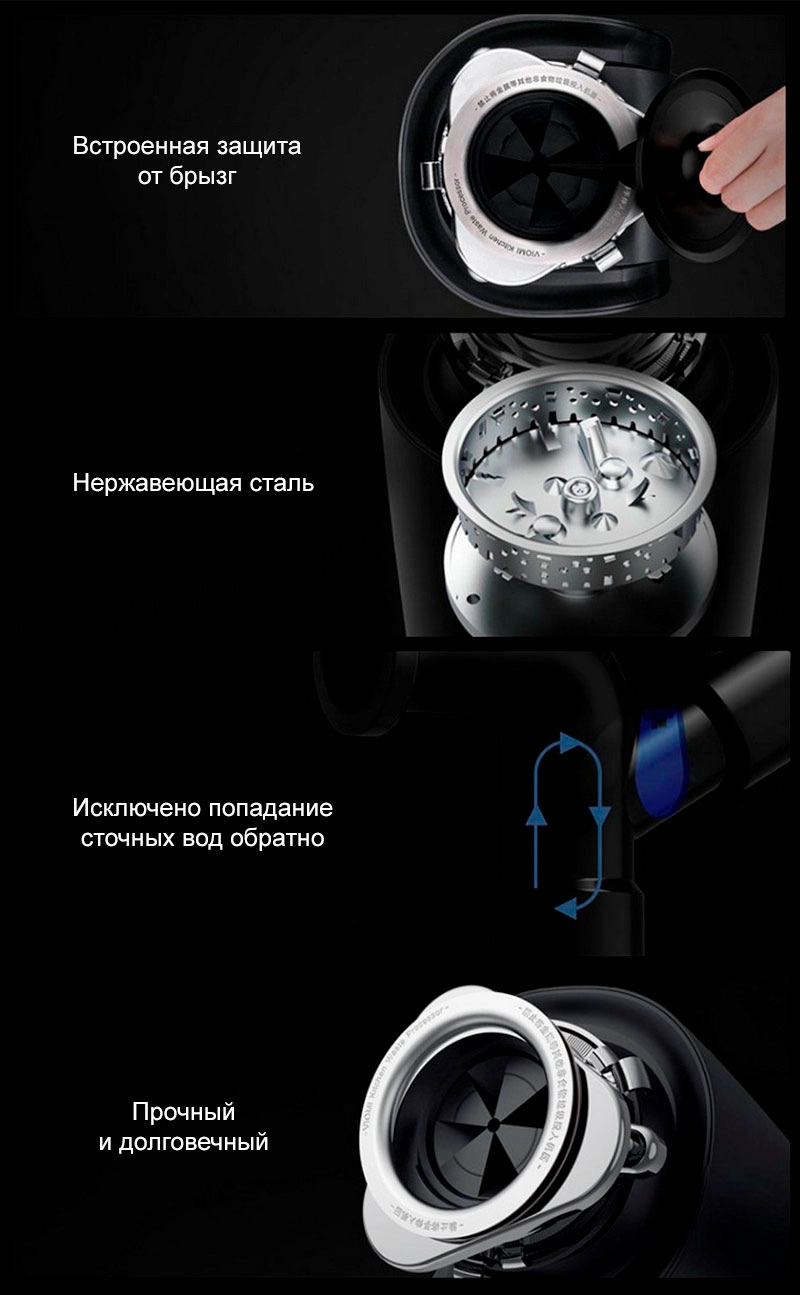 Измельчитель пищевых отходов позволяет избежать засорения канализации и гниения пищевых отходов в ведре. Никакого запаха и насекомых.