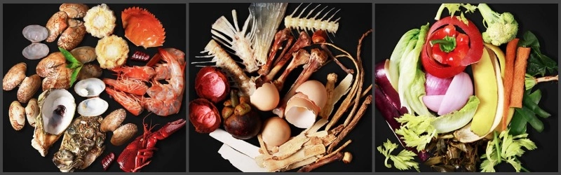 Измельчитель пищевых отходов справляется с ракушками, свиными костями, яичной скорлупой, костями птиц и рыбы, а также остатками овощей, фруктов и др. пищевым мусором.