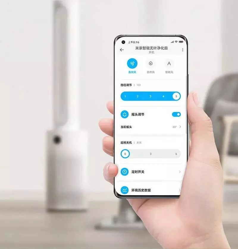 Mi Smart Leafless Purifier Fan легко подключается к системе умного дома, поддерживает голосовое управление и автоматические сценарии. Управляйте устройством через колонку или приложение, создавая комфортный климат без лишних усилий.