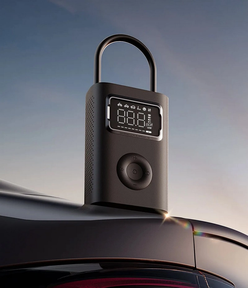 Насос отображает прогресс накачивания шин в реальном времени на встроенном экране.