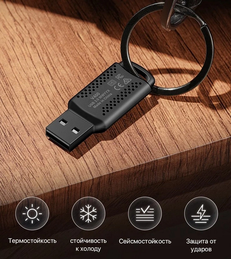 Производитель позаботился о том, чтобы перепады температур и падения не приводили к повреждению данных, записанных на флеш-накопитель.