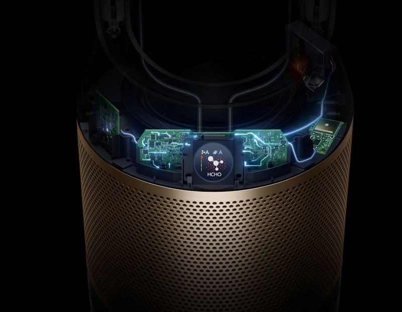 Внутри очистителя Dyson находятся четыре датчика, которые отвечают за обнаружение в воздухе паров формальдегида, они отправляют данные в центр анализа данных, который использует уникальный алгоритм для диагностики состояния воздуха.
