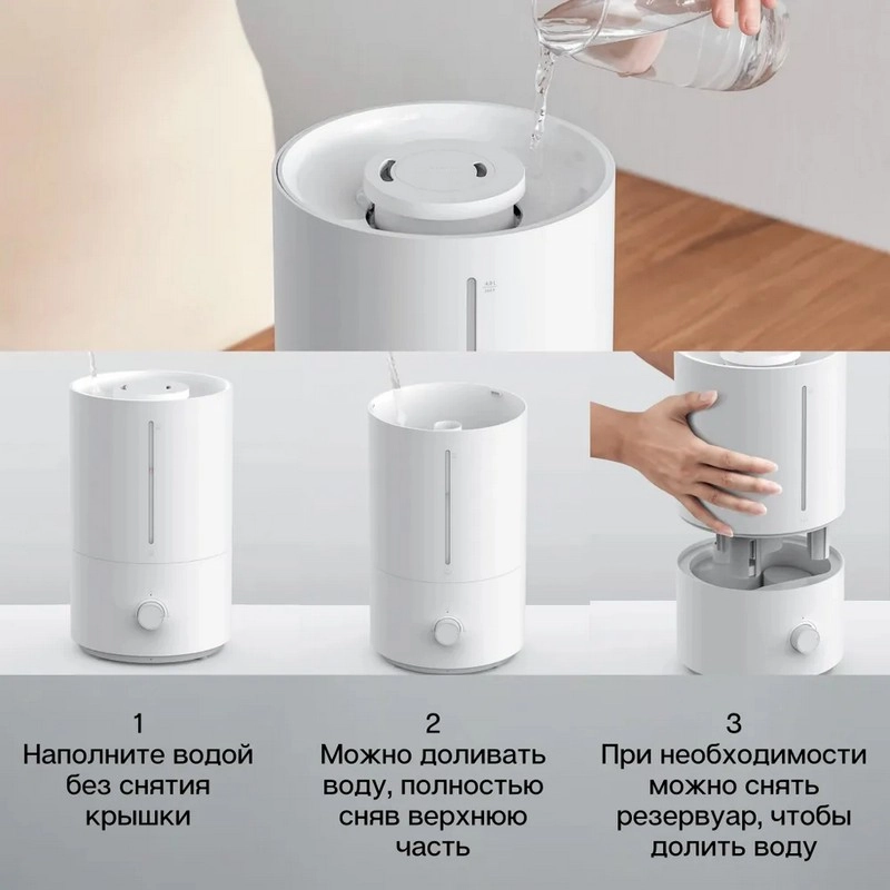 Xiaomi Mijia Humidifier 2 поддерживает верхний долив, а когда бак нужно наполнить полностью, то его легко снять.