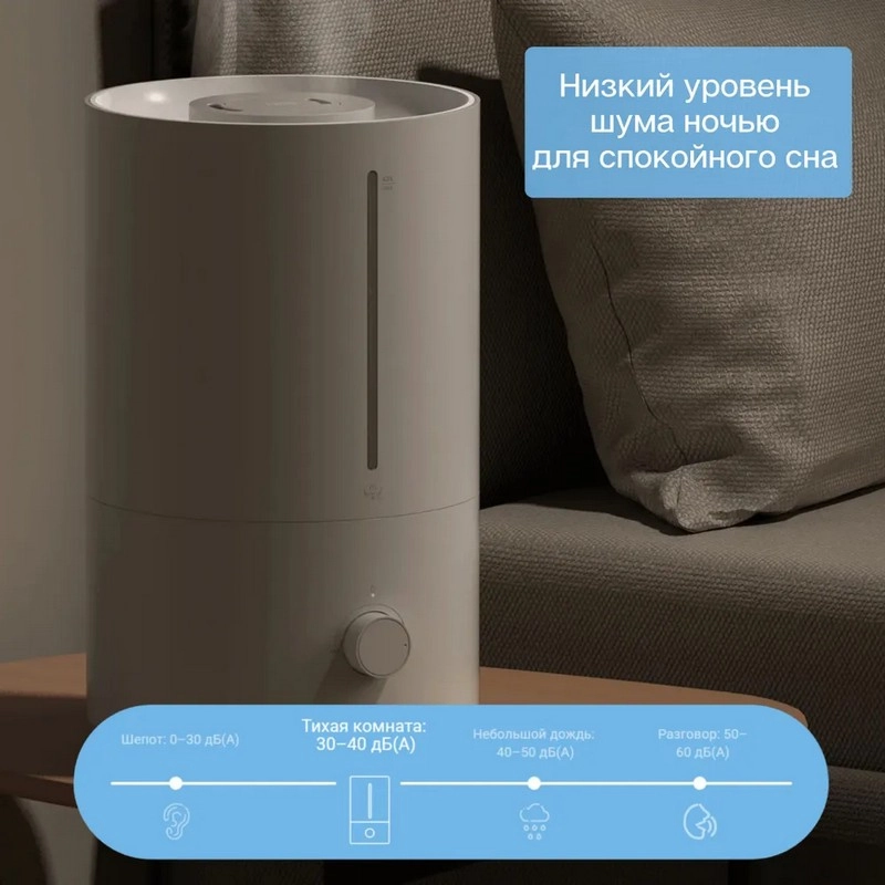 Увлажнитель воздуха Xiaomi Mijia Humidifier 2 (MJJSQ06DY) — объемом 4 литра работает всю ночь без дозаправки. Он рассчитан на помещения площадью до 30 м² и может испарять до 300 мл воды в час.