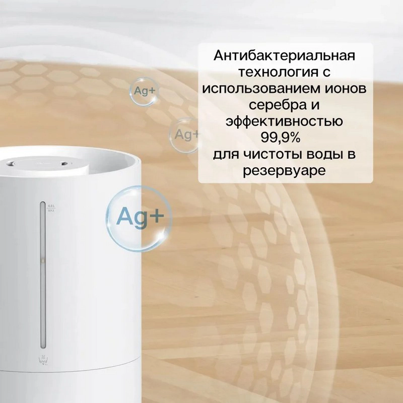 Ионы серебра, которые генерирует увлажнитель подавляют рост и развитие микроорганизмов в стоячей воде.