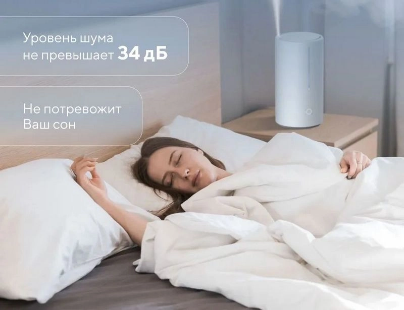 Увлажнитель воздуха работает очень тихо и не мешает спокойному сну. В ночном режиме уровень шума не превышает 34 дБ.