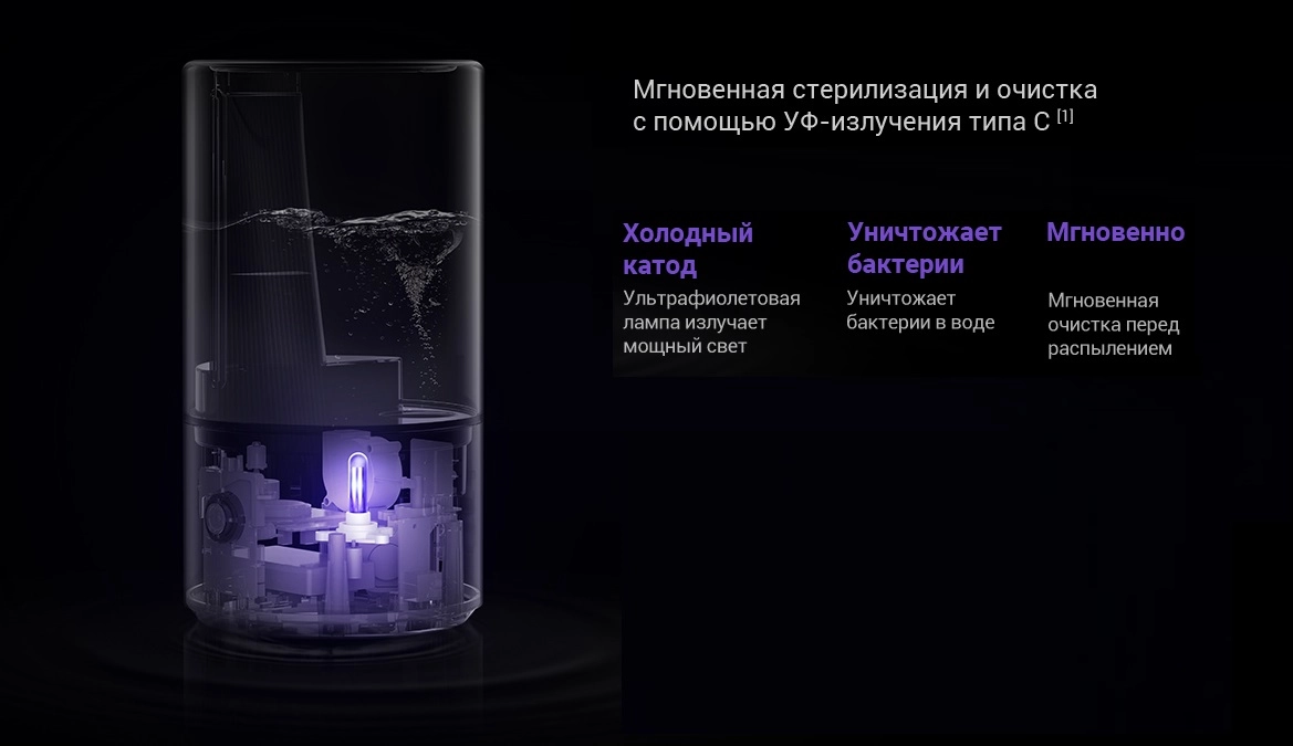 Заметным преимуществом интеллектуального увлажнителя Xiaomi Smart Sterilization Humidifier является современный механизм дезинфекции UV-C.